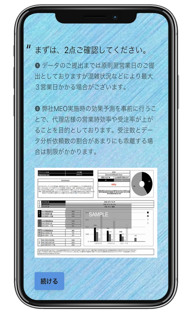 データ分析依頼を行うと、大体の予測リーチ、来店数や予約数などを申込前に提供でき納得してから申込可能。